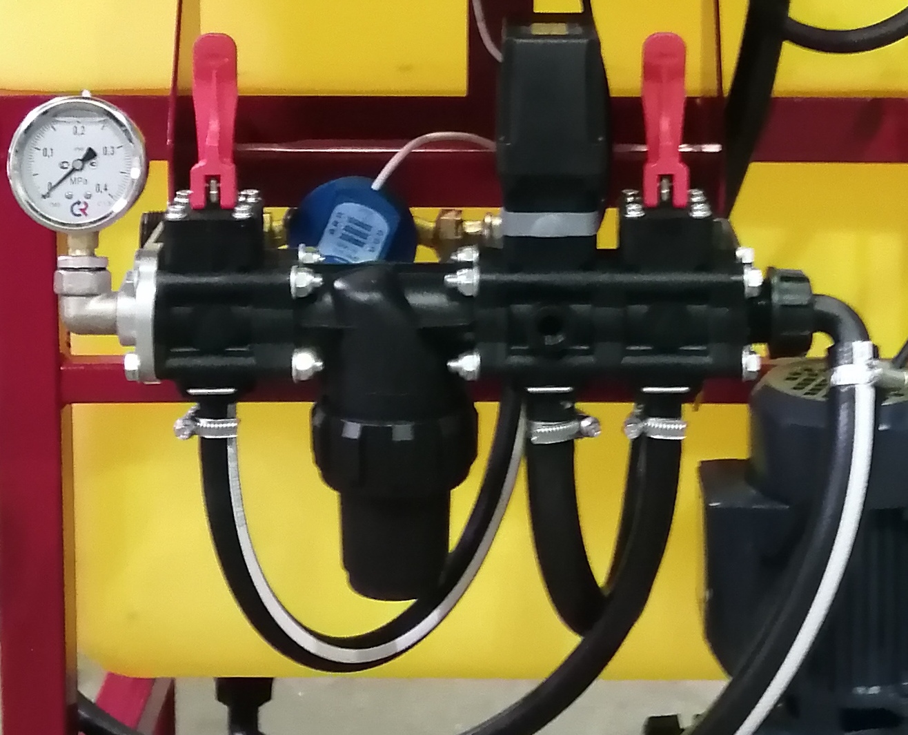 3. Установка расходомера с ручным пропорциональным краном для установки необходимого расхода рабочей жидкости который отражается на дисплее щита управления в л/мин.